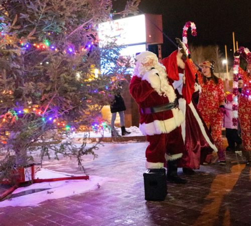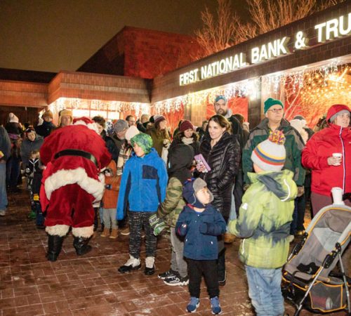 As the sun sets, join us for a festive foot parade to the First National Bank & Trust Plaza, led by Santa and Mrs. Claus. Along the way, sing your heart out during our community Christmas caroling, spreading joy and cheer. To conclude the evening, participate in the community tree lighting ceremony, marking the beginning of the holiday season in a truly magical way.